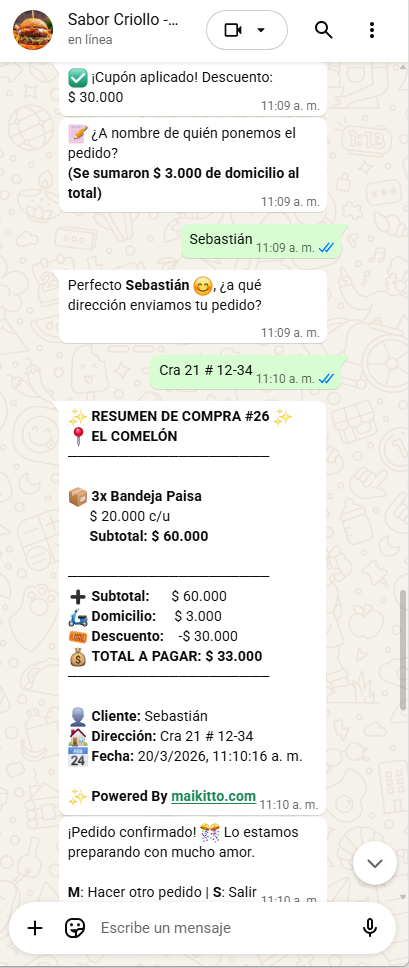 "La función para crear cupones es fantástica. Lancé una promoción y vi un aumento inmediato en los pedidos. Mis clientes aman lo fácil que es usarlo."